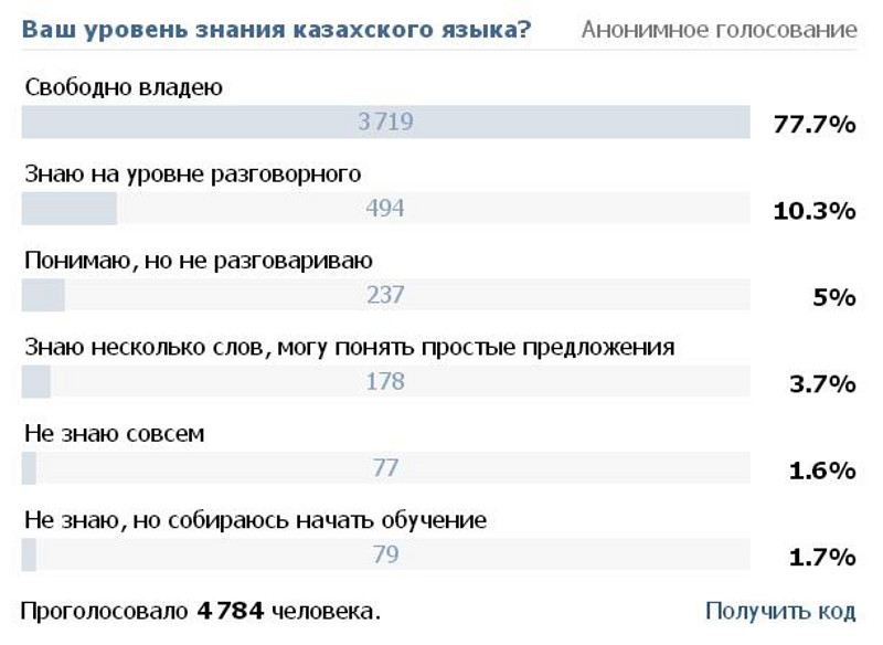 Результаты социологического опроса показали, что более 70% казахстанской молодежи свободно владеют государственным языком.
