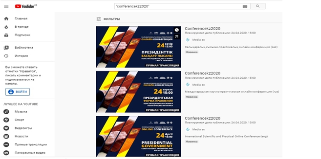 Зайдите в «YouTube», и введите в поисковик данный хэштег «conferencekz2020» (вместе с кавычками).