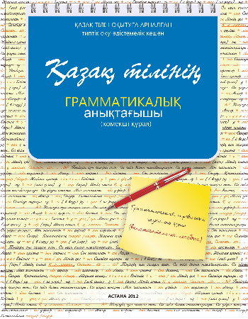 Қазақ тілін оқытуға арналған грамматикалық анықтағыш/ Авторлары: Г.Қ. Досмамбетова, З.С. Ерназарова, З.С. Күзекова, А.О. Тымболова Астана: Ұлттық тестілеу орталығы, 2012 – 300 бет.
