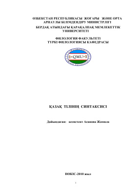 Асанова Ж. Қазақ тілінің синтаксисі