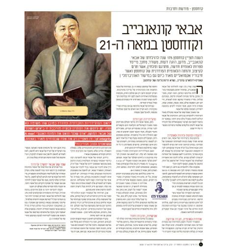 Известная газета «Хаарец» недавно опубликовала на своих страницах специальный материал о феномене Абая, используя публикацию Президента Казахстана Касым-Жомарта Токаева.