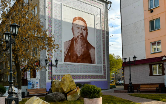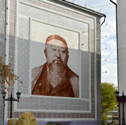 Автор портрета - уроженец Петропавловска, член союза художников Казахстана Болат Асербеков. Уникальность изображения - это отсутствие срока износа. Ему не страшны дожди и холода. Стоит отметить, что это первый мурал в стране, выполненный из керамики.