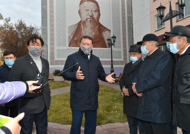 Глава региона встретился с представителями общественности, учеными, историками и литераторами около керамического панно Абая Кунанбаева. Работа посвящена 175-летию великого поэта и выполнена из керамической плитки снаружи дома на пересечении улиц Абая и Ауэзова, сообщает zakon.kz.