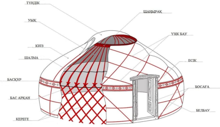 Белбау - туырлықтың керегеге тығыз жатуы және жел көтеріп кетпеуі үшін сыртынан бастырып буатын қыл арқан.