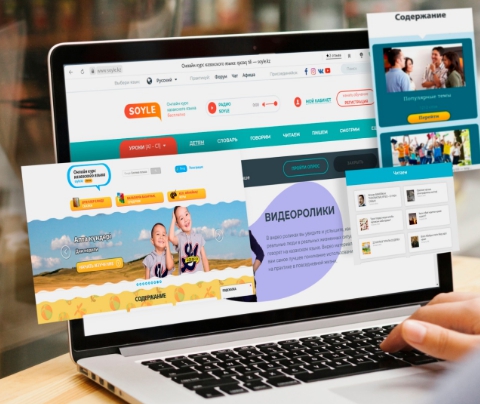 Осы бағытта қазақ тілін үйрететін ең алғашқы әрі тегін сайт - Soyle.kz жобасын құрдық. Бұл ресурс Қазақстанда қазақ тілін интернет арқылы оқытудың ізашары болды. Мобильді қосымшасы да іске қосылды. Кейіннен сайттың ағылшын-латын нұсқасы енгізілді, түрікше-қазақша нұсқасы да жасалып жатыр. Дәл қазіргі уақытта тіл үйренушілер саны 140 мыңнан асты.